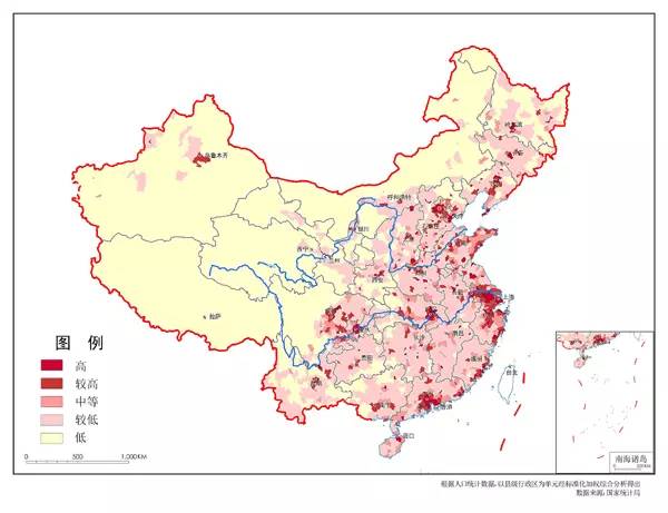 我國地均地區生產總值最高的地區主要分布在河北、山東、江浙及沿海地區,地均地區生產總值高于2000萬元/平方公里,但分布不到中國國土面積的1/10。廣大的中部地區、西北部及西南一帶地均地區生產總值較低。推進西部大開發、中部崛起以及振興東北形勢依然緊迫。